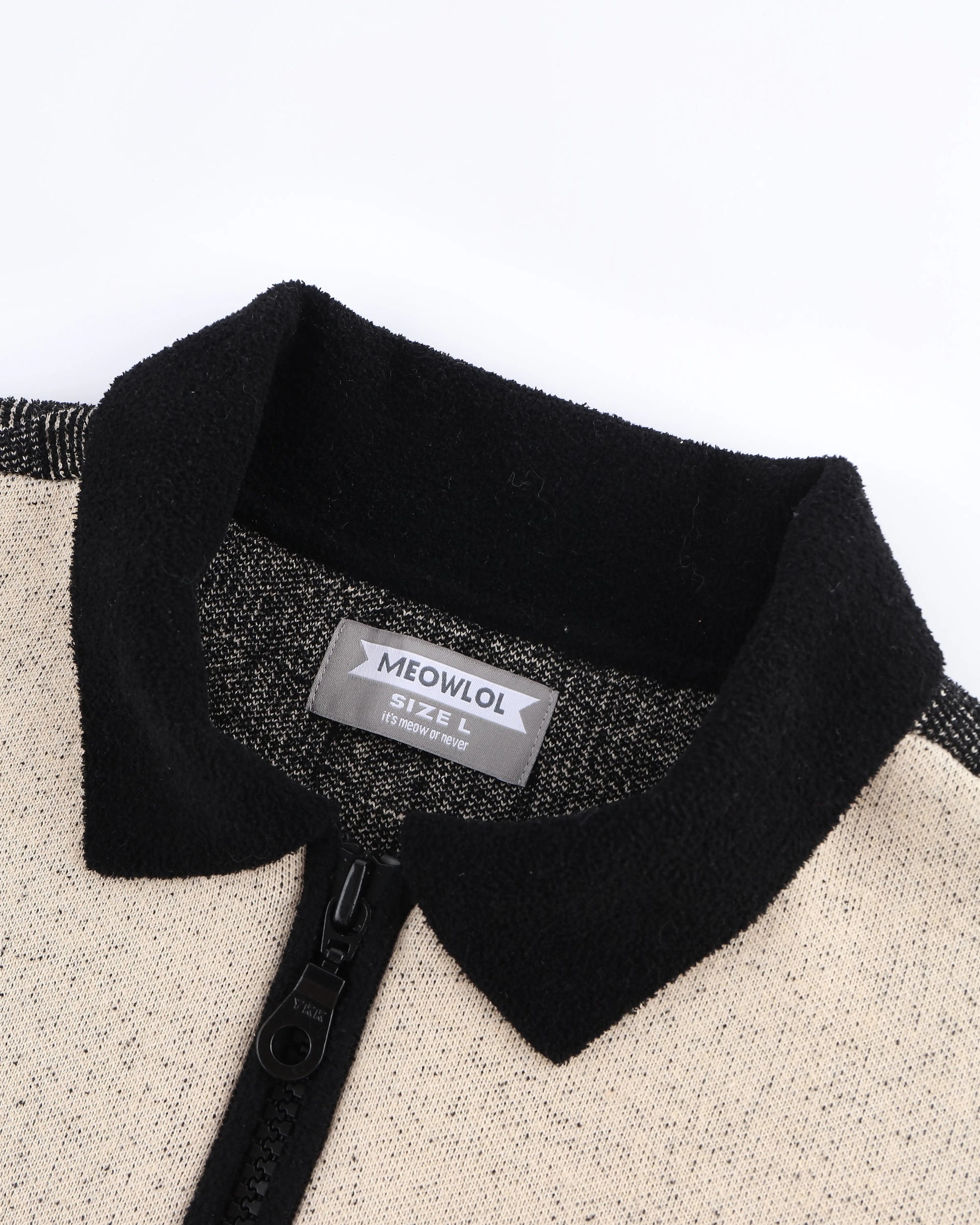 MEOWLOL CAT KNITTED SHORT SLEEVES ZIP-UP SHIRT